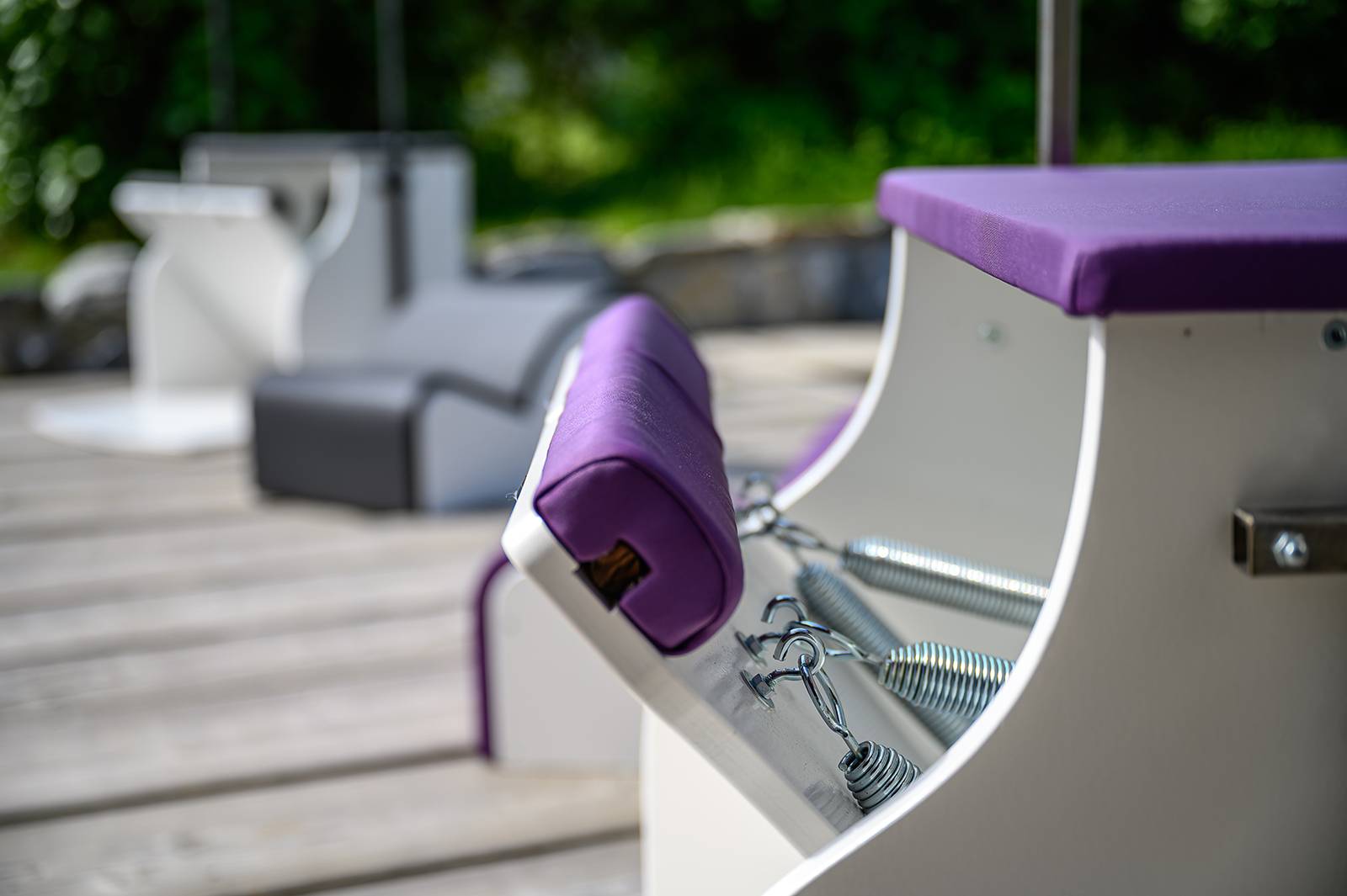 A kombó széket Joseph Pilates eredeti Wunda széke ihlette olyan funkcionális innovációkkal, mint a párnázott osztott pedál. Ezek a párnázott, osztott pedálok lehetővé teszik a forgó és bilaterális mozgását alkalmazó gyakorlatokat. Minden pedál 2 rugóval rendelkezik 3-3 akasztási lehetőséggel összesen 81 féle ellenállási opcióval. A pedálokat együtt és külön-külön is lehet használni.